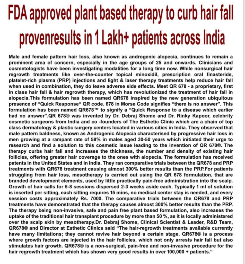 FDA approved plant based therapy to curb hair fall proven results in 1 Lakh+ patients across India – News Beat, Kolkata