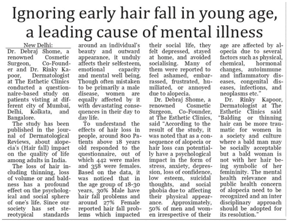 Ignoring Early Hair Fall In Young Age, a Leading Cause Of Mental Illness – Top Story, Delhi